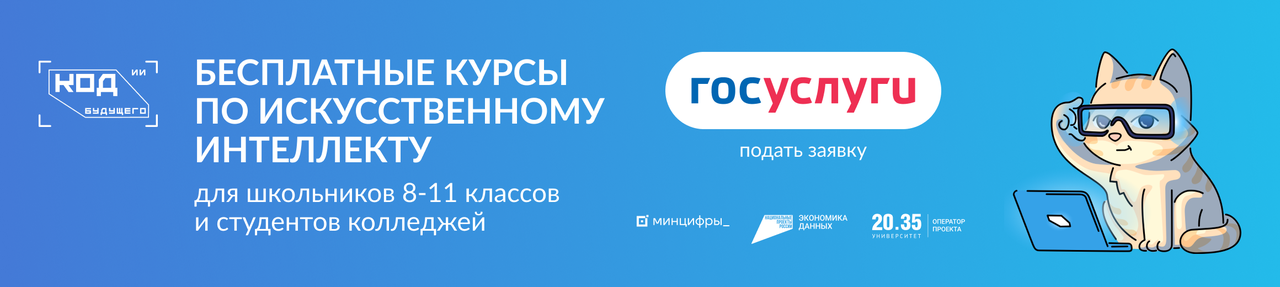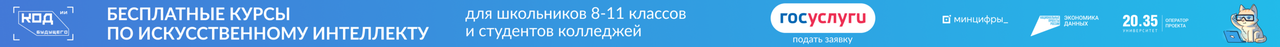 Приглашаем на бесплатный практический курс «Инструменты искусственного интеллекта: применяем и программируем» в рамках федерального проекта «Код будущего. Искусственный интеллект». Это государственный проект, направленный на развитие цифровых навыков школьников и студентов.