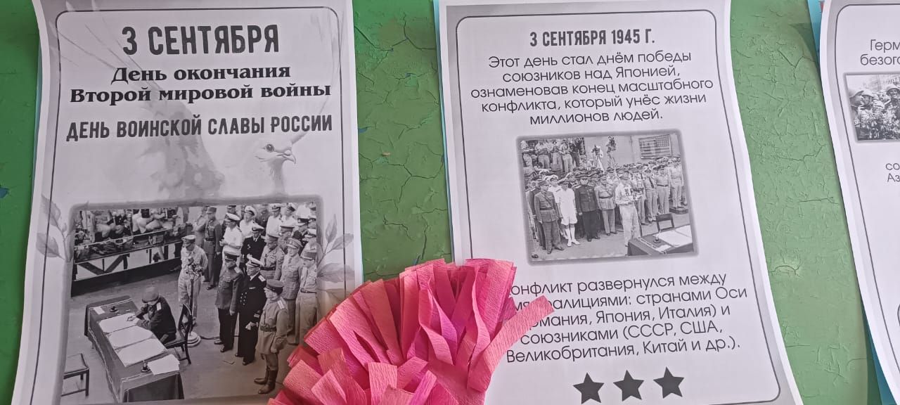 3 сентября в День Победы над милитаристской Японией и окончания Второй мировой войны в рамках дня единых действий в МБОУ 'Выделянская СОШ" было проведено мероприятие 'Подвиг народа". Советник директора по воспитательной работе Поляничко Э.И. совместно с учителем истории Сухоконь С.А. провели круглый стол с обсуждением темы события. В ходе дискуссии учащиеся старшей школы могли задать вопросы и высказать свои суждения. Это создало атмосферу открытости и взаимопонимания, позволяя глубже понять сложные аспекты войны.