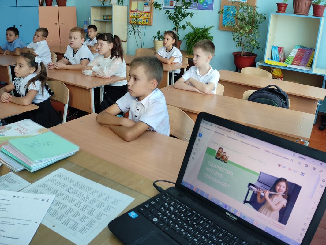 15 сентября в МБОУ "Выделянская СОШ" прошло занятие из цикла Разговоры о важном. Его тема "Творчество, которое объединяет". Сегодня занятие было посвящено формированию ценностного отношения к творчеству, осознанию значимости российской культуры, как части мирового наследия и мотивации к развитию у учащихся собственных творческих способностей. Ключевым моментом урока стала беседа о русской культуре, обсуждение конкурса "Интервидение", как примера диалога культур. А интерактивное задание "Времена года" позволило сопоставить музыку Петра Ильича Чайковского с картинами великих русских художников той же тематики. Большое внимание на занятии было уделено вопросу развития своих талантов и проблеме поиска вдохновения для этого.