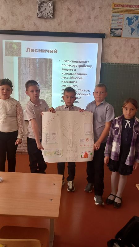 19.09 в МБОУ "Выделянская СОШ" было проведено мероприятие, посвящённое всем кем, кто трудится на благо сохранения и защиты лесных ресурсов. Советник директора по воспитательной работе Поляничко Э.И. познакомила учащихся начальной школы с профессиями людей, связанных с охраной, восстановлением иррациональным использованием лесных ресурсов-лесник, лесничий, егерь,эколог и др. В ходе беседы ребята пришли к выводу, что лес является не только ценным природным ресурсом, но и важнейшей частью экологической системы планеты, а труд тех, кто его сохраняет заслуживает самого глубокого уважения. В ходе мероприятия большое внимание было уделено обсуждению экологических вопросов. Итогом занятия стала коллективная работа по созданию плаката "Берегите лес".