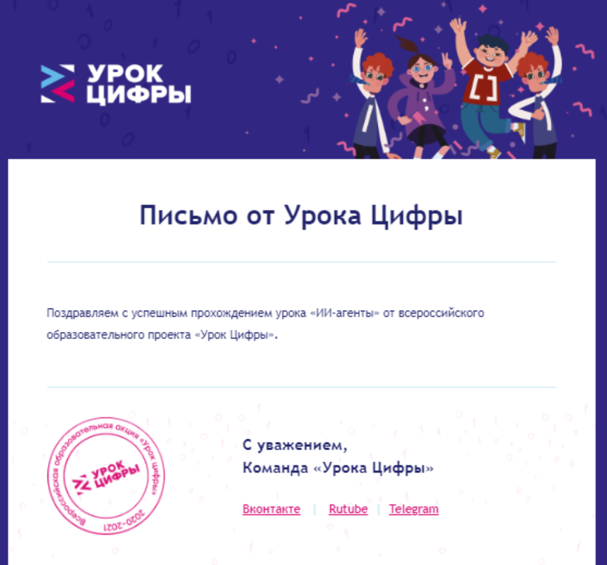 «Урок цифры» по теме «Искусственный интеллект – агенты будущего» стал ярким событием, которое доказало: учиться может быть невероятно интересно. И кто знает, возможно, именно в стенах нашей школы растут будущие создатели следующего прорывного ИИ-агента, который изменит мир