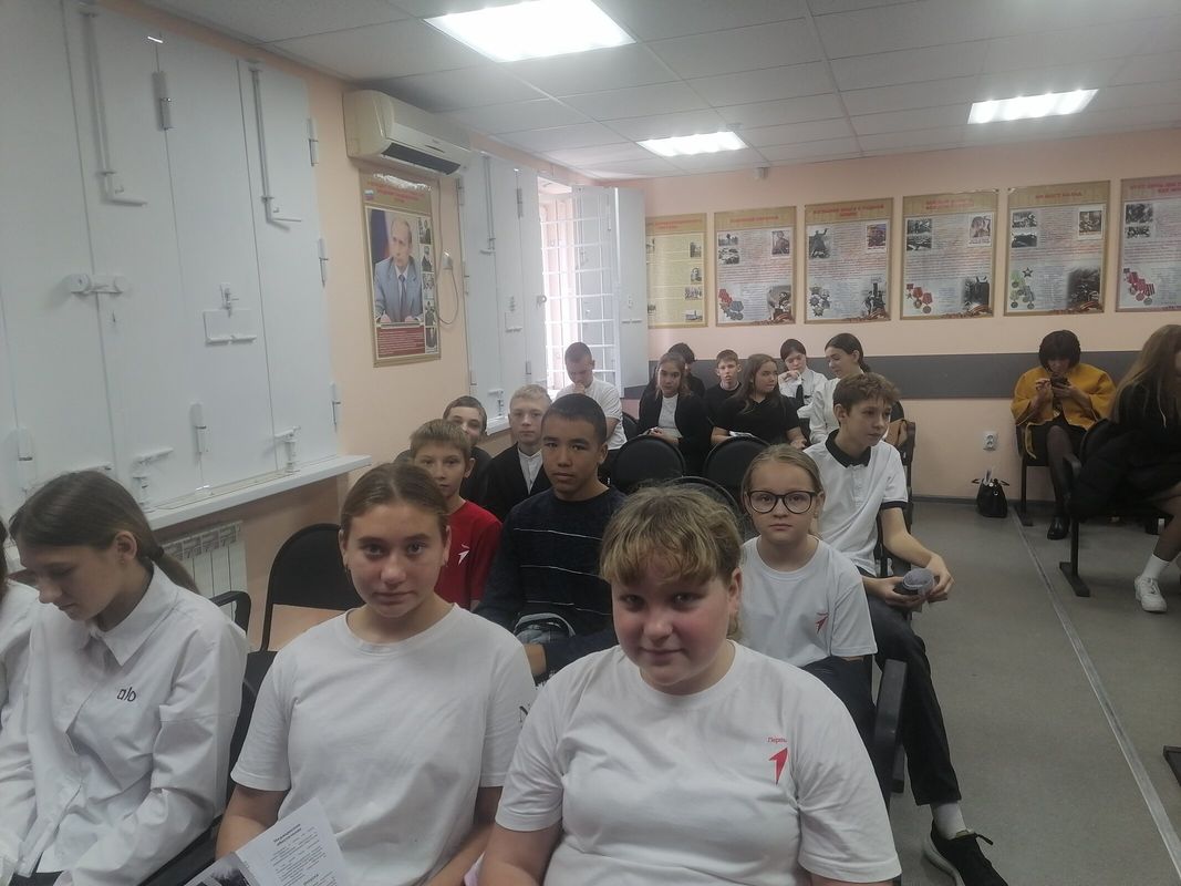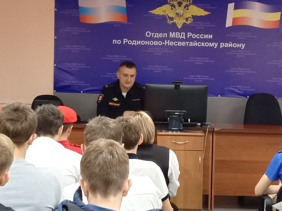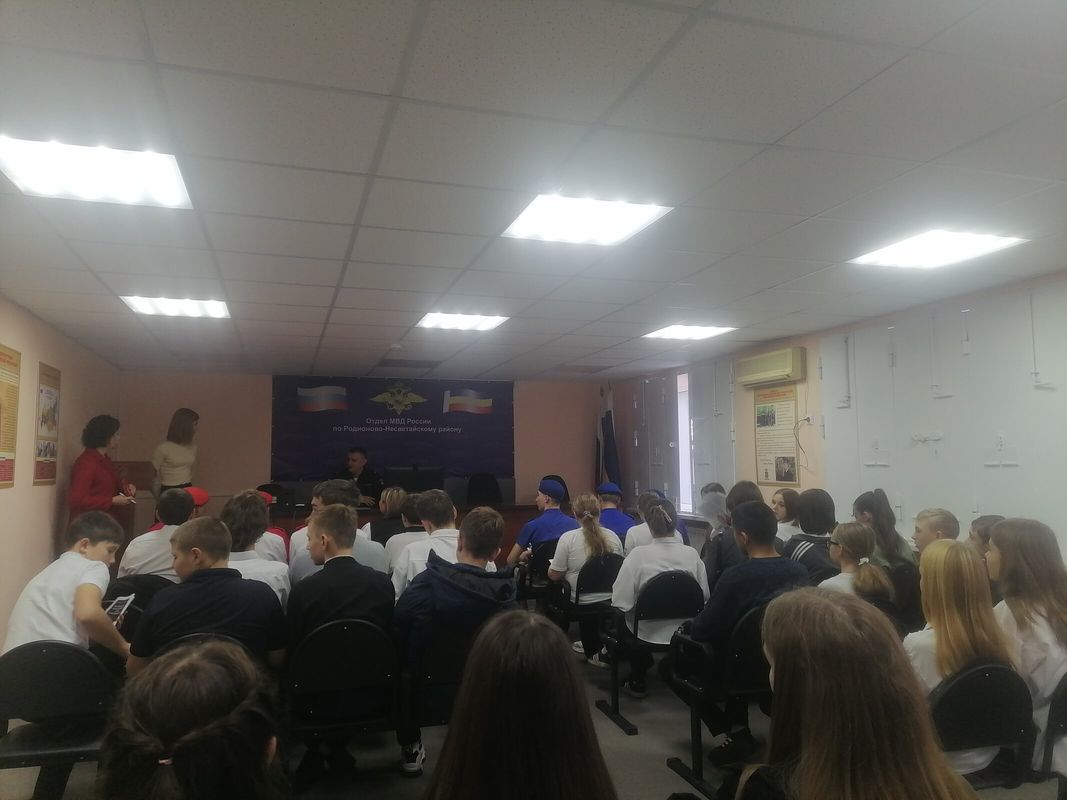 Сегодня мы побывали в ОМВД России по Родионово-Несветайскому району. Даже вход в здание впечатлял. Ни одна дверь не открывается без специального ключа. Все коридоры забраны решетками. Сразу понимаешь, что попал в серьёзно охраняемое место. Мы поднялись на второй этаж в актовый зал. И тут нас ждал еще один сюрприз: на всех окнах металлические ставни-бойницы. Такого нам точно не приходилось еще видеть! Еще до начала встречи мы уже были под впечатлением от окружающей обстановки. Наверно, еще никогда 50 учеников не вели себя так тихо в ожидании начала мероприятия.