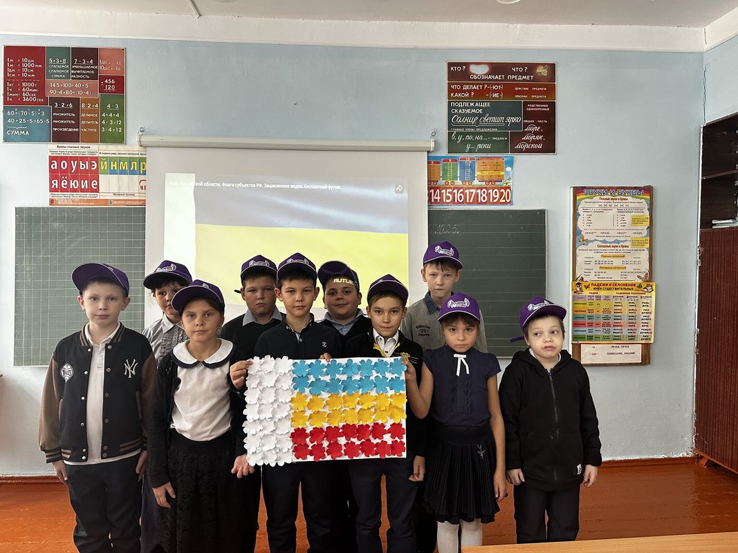 Ко дню символов Ростовской области «Орлята России» 2-4 классов приняли участие в творческой мастерской «Флаг Ростовской области». Ребята из цветов создали изумительный  флаг и поговорили о том, что означает каждый цвет на флаге.