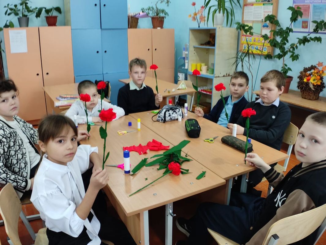 Сегодня в нашей школе прошли мероприятия, посвящённые Дню Неизвестного солдата, который отмечается 3 декабря. Этот день является важным напоминанием о подвиге солдат, отдавших свои жизни за свободу и независимость нашей Родины. Ребята начальной школы подготовку к празднику начали за несколько дней. Они приняли активное участие в акции" Красная гвоздика". Советник директора по воспитанию ПоляничкоЭ.И. организовала и провела урок- беседу о значимости памятной даты, истории праздника, его значимости. Под руководством классных руководителей ПоповойН.И, РеукаО.В., НасоновойВ.А. ребята изготовили красные гвоздики-символ памяти и уважения к солдатам. Дети с большим энтузиазмом работали над своими поделками, обсуждая значение этого символа и его связь с памятью о героях. Сегодня, 3 декабря, учащиеся вместе с педагогами отправились к памятнику Погибшим воинам, чтобы возложить изготовленные гвоздики. Это стало трогательным моментом, наполненным уважением и благодарностью. Дети почтили память героев минутой молчания, осознавая важность их подвига.