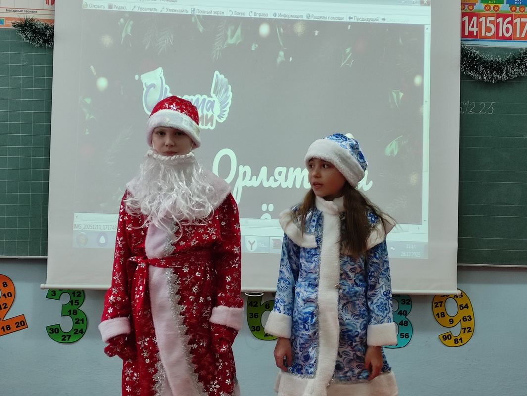На мероприятии дети встретились со своими любимыми новогодними персонажами - Дедом Морозом и Снегурочкой, поиграли в игры на внимательность и смекалку: «Игрушка по кругу», «Ёлочная игралочка», «Лабиринт», «Снегоходы», вместе с Дедом Морозом и Снегурочкой исполнили песню «Ведь мы с тобой Орлята!» В завершении праздника поздравили всех с наступающим Новым 2026 годом! Пожелали друг другу хорошего настроения, отличной учёбы и исполнения желаний!