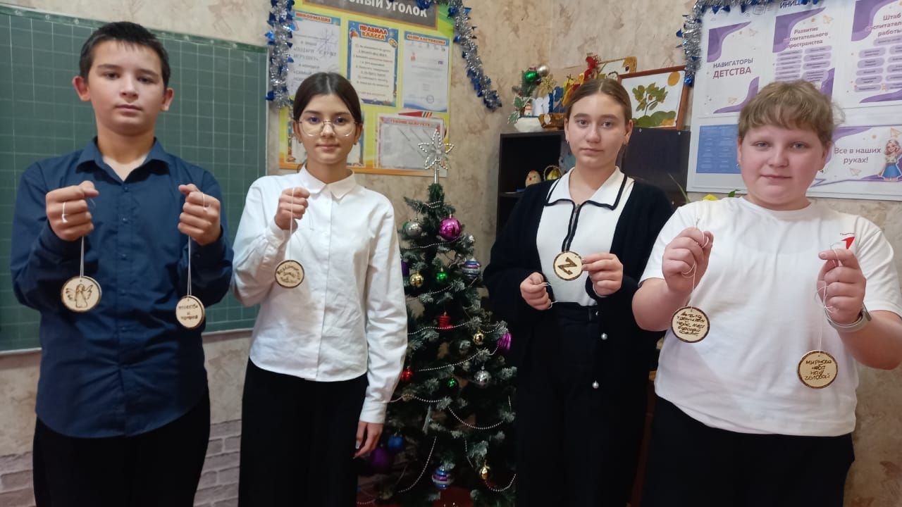 В преддверии Нового года в нашей школе прошла замечательная акция, посвящённая изготовлению новогодних сувениров для участников специальной военной операции. Ученики разных классов с радостью приняли участие в этой инициативе, стремясь поддержать и выразить свою благодарность тем, кто защищает нашу страну. Ученики начальных классов изготовили из цветной бумаги новогодние ёлочки с пожеланиями участникам СВО, выражая свою поддержку и благодарность. Шестиклассники создали уникальные медальоны-обереги, каждый из которых содержал пожелания для тех, кто будет их носить. Медали были украшены символами удачи и защиты и стали знаком заботы и поддержки, которые ребята хотели передать тем, кто находится сейчас на передовой. Девятиклассники, изготавливая игрушки на ёлку своими руками, проявили не только свою креативность. Пожелания, которые ребята хотели донести до участников СВО стали символом единства и поддержки.