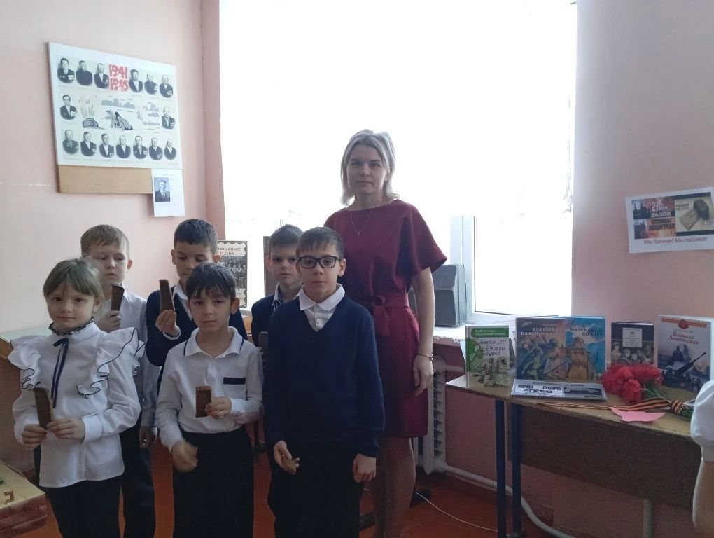 В рамках Всероссийской акции "Блокадный хлеб", приуроченной к 82-летию полного освобождения Ленинграда от фашисткой блокады в годы Великой Отечественной войны, в  библиотеке  МБОУ "Выделянская СОШ" прошел урок памяти "Блокадный хлеб" , цель которой- напоминание о мужестве и  стокойсти  мирных жителей Ленинграда.