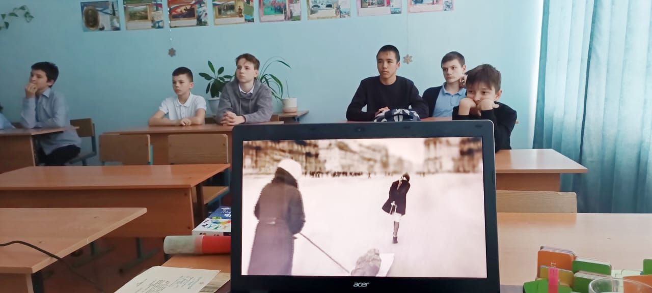 Для учащихся 6-7 классов был проведен Час памяти "Непокоренный Ленинград". Учитель истории Сухоконь С. А., рассказала учащимся о тяжёлой жизни ленинградцев в условиях обстрелов, голода, карточек, о 'дороге жизни', о мужестве и героизме защитников Ленинграда.