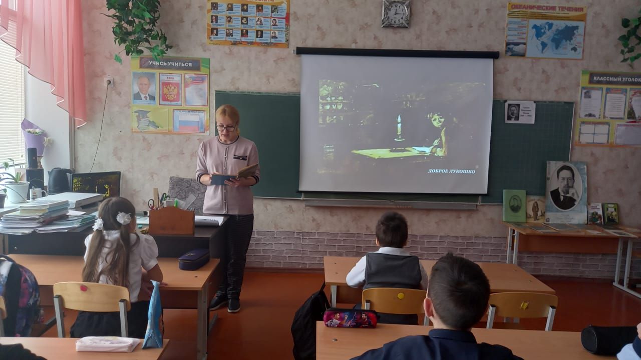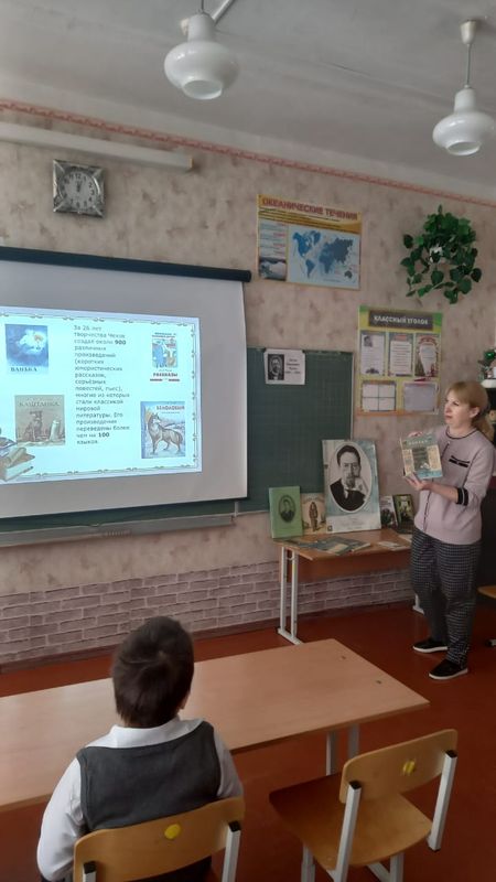 29 января в начальной школе советником директора по воспитательной работе Поляничко Э.И. было проведено мероприятие, посвящённое Дню рождения великого русского писателя Антона Павловича Чехова. Мероприятие началось с интересной презентации, в которой была представлена биография писателя. Ребята узнали о жизни Антона Павловича Чехова, его творческом пути и значении произведений для русской литературы.