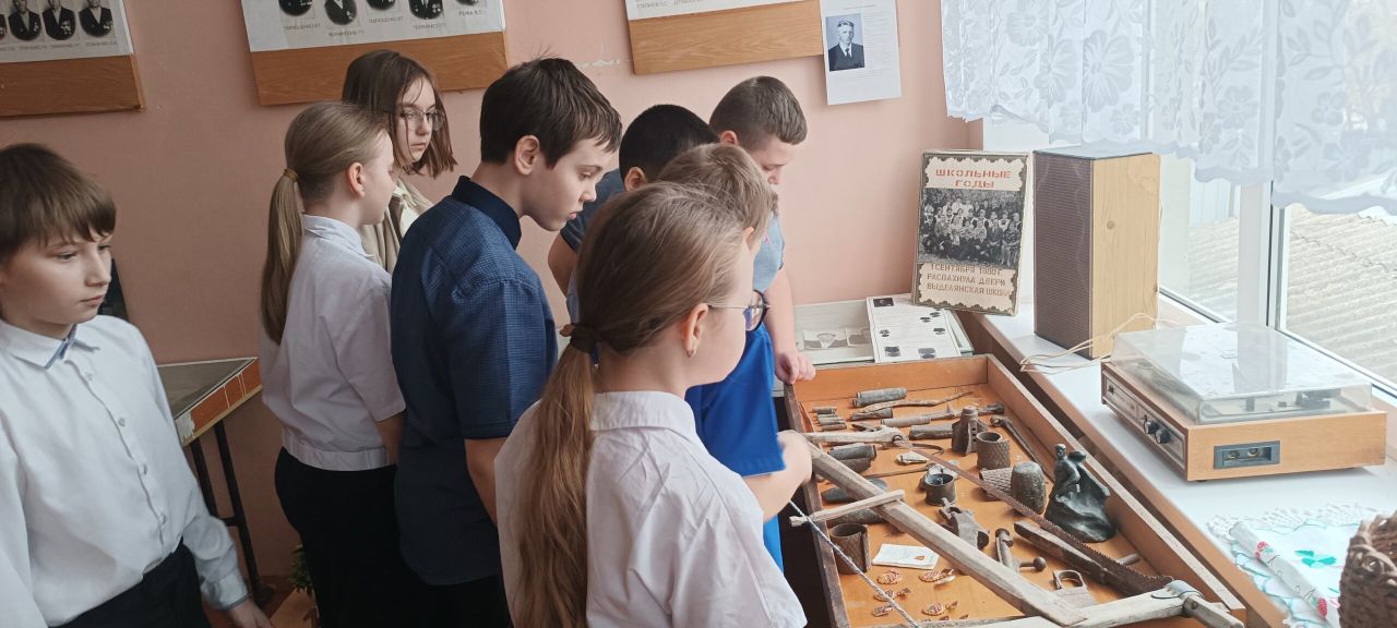 В рамках оборонно-массовой и спортивной работы, с целью расширения кругозора и познавательных интересов, воспитания духовно-нравственных и патриотических чувств учащиеся 5-9 классов МБОУ «Выделянская СОШ» вместе с учителем истории Сухоконь С.А. посетили школьный краеведческий музей.