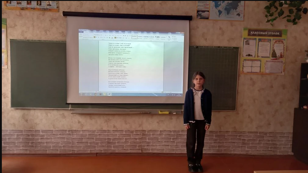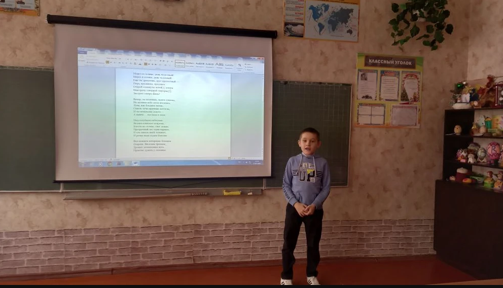 21 марта отмечается Всемирный день поэзии. С учащимися начальной школы советником директора по воспитанию Поляничко Э.И. было организовано и проведено мероприятие, посвящённое этой дате. В ходе просмотра видеоролика ребята познакомились с историей и традицией праздника, с тем как принято отмечать этот день календаря в нашей стране. Ребята читали свои любимые поэтические произведения. Звучали стихи ПушкинаА.С. Тютчева Ф.И, ЕсенинаС.А. Одним из этапов мероприятия было проведение физминуток "Зарядка с рифмой", формат которой представлял собой игровую двигательную активность учащихся, но упражнения адаптировались под сюжеты известных детских стихов МаршакаС.Я., БартоА.Л. МихалковаС.В. В конце занятия ребята рисовали иллюстрации к своим любимым поэтическим произведениям. Занятие носило творческий характер, акцентируя внимание учащихся на созидательной роли литературы и поэзии в частности.