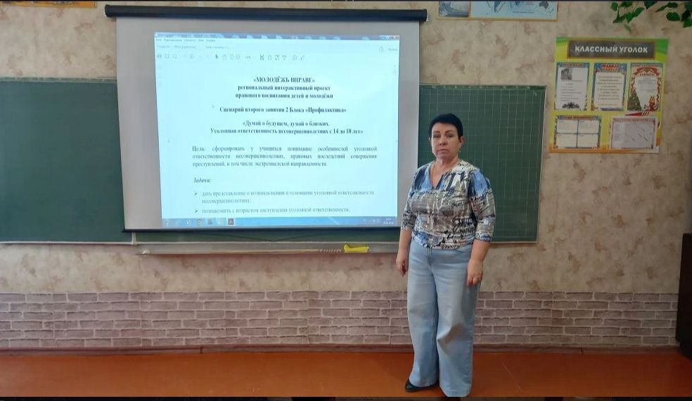 24. 03 в МБОУ Выделянская СОШ советником директора по воспитанию ПоляничкоЭ.И. с учащимися пятых-седьмых классов в рамках реализации регионального интерактивного проекта правового воспитания детей и молодёжи" Молодёжь вправе" было организовано и проведено занятие "Думай о будущем, думай о близких. Уголовная ответственность несовершеннолетних с 14 до 18 лет ". Цель занятия: сформировать у учащихся понимание особенностей уголовной ответственности несовершеннолетних, правовых последствий совершения преступлений, в том числе экстремистской направленности. В ходе занятия ребята узнали от трёх видах юридической ответственности: уголовной, административной, гражданско-правовой. Особое внимание было уделено порядку привлечения к уголовной ответственности. Ребята в группах работали с Федеральным Законом от 17.11.25 года 420-ФЗ УК РФ, разбирались, за какие виды преступлений наступает уголовная ответственность с 14 лет. Работая в парах, учащиеся обсуждали кейс- ситуацию, определяли, есть ли в описанных действиях признаки правонарушения или преступления. В конце занятия ребята пришли к выводу, что уголовный закон строг, но справедлив. Он защищает общество от опасных посягательств. Но наше будущее - в наших руках.