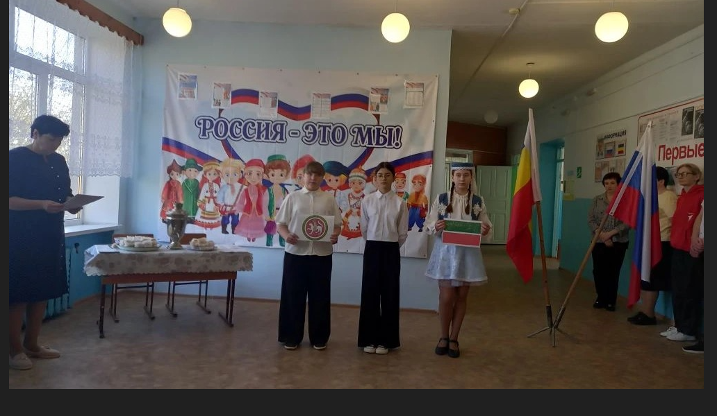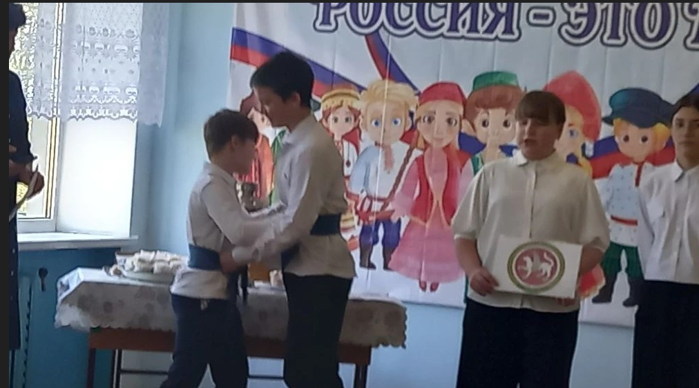 В рамках этнокультурного проекта "Россия - это мы" в формате" за 10 минут- о главном" ученики шестого класса подготовили материал о культуре и национальных особенностях татар. Звучали произведения национального фольклора, ребята даже исполнили песню на татарском и русском языке о любви к родному краю. Особо порадовало присутствующих национальное татарское блюдо чак-чак, приготовленное девочками из шестого класса и их мамами.